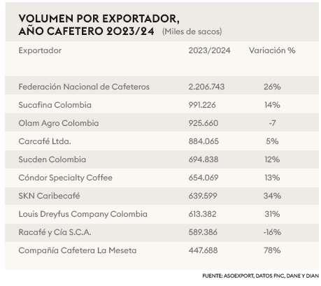Por otra parte, China se consolidó como el quinto mercado de las exportaciones colombianas, con un volumen de 706.381 toneladas y un aumento del 154% frente a 2022/23.