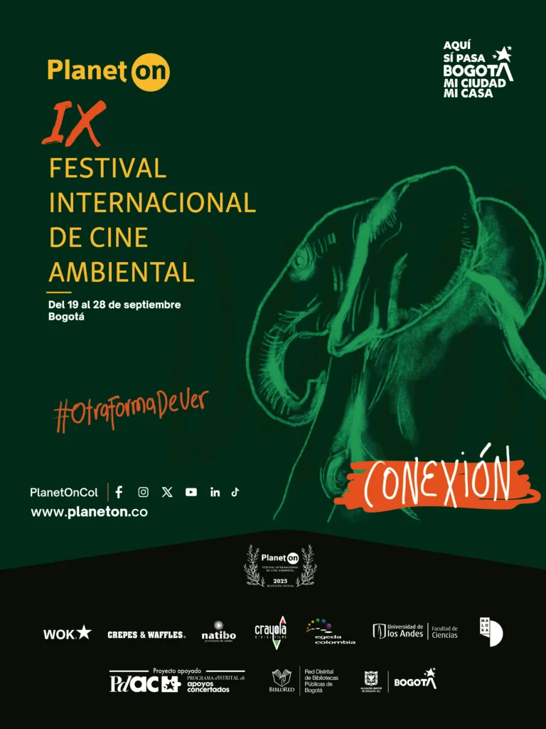 El Festival Internacional de Cine Ambiental Planet On arranca el próximo viernes 19 de septiembre y termina el 28 de septiembre, y la programación activa un circuito de ciudad con proyecciones en Maloka, bibliotecas públicas de BibloRed y Centros Felicidad en Chapinero, Cometas, Fontanar del Río y Tunal.