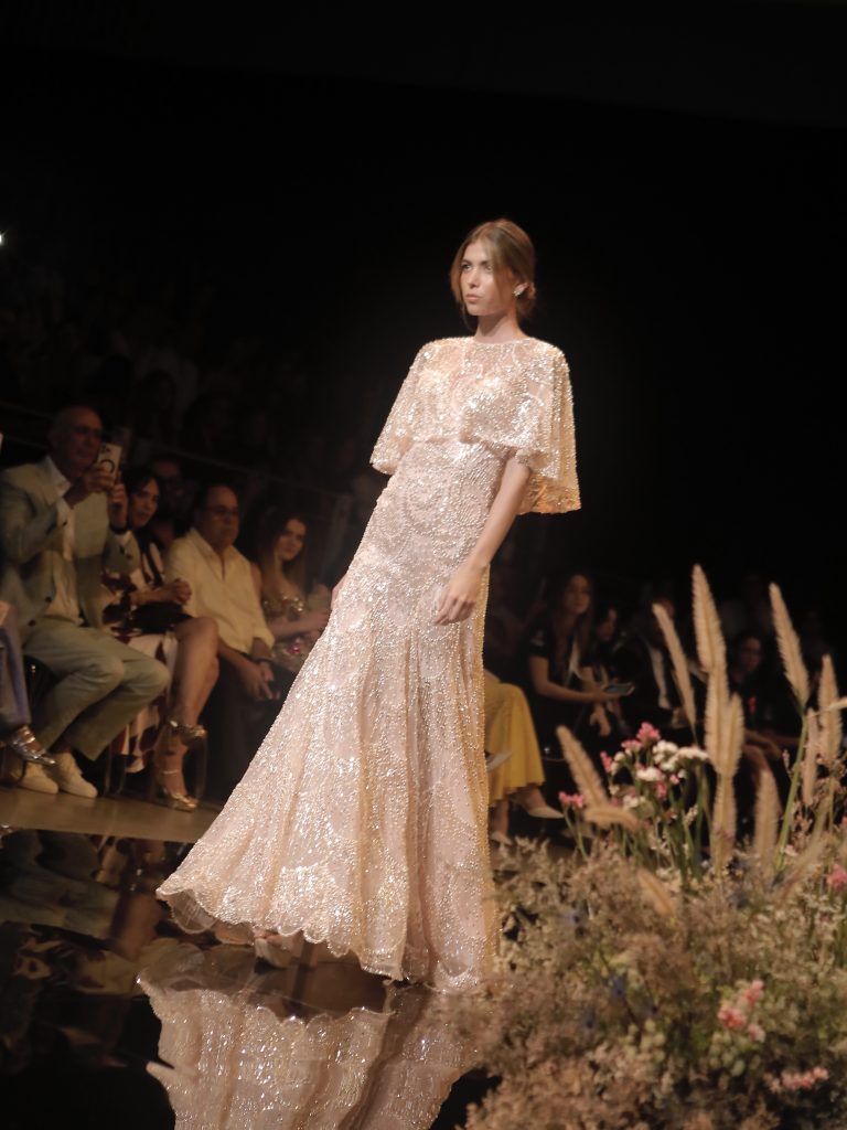 Con un equipo de 25 personas, entre ellas, artesanas en su mayoría mayores con amplia experiencia en bordado. El atelier combina tradición y formación a nuevas generaciones. Parte de su filosofía es preservar los oficios manuales y mantener procesos sostenibles: los retazos de tela se reutilizan en accesorios y flores decorativas, y muchas de sus creaciones se heredan entre generaciones, reforzando su enfoque en un lujo duradero. Un ejemplo de ello son los vestidos confeccionados hace casi dos décadas para clientas que hoy son usados por sus hijas, una muestra de cómo la atemporalidad y la calidad del trabajo mantienen vigente cada pieza con el paso del tiempo.