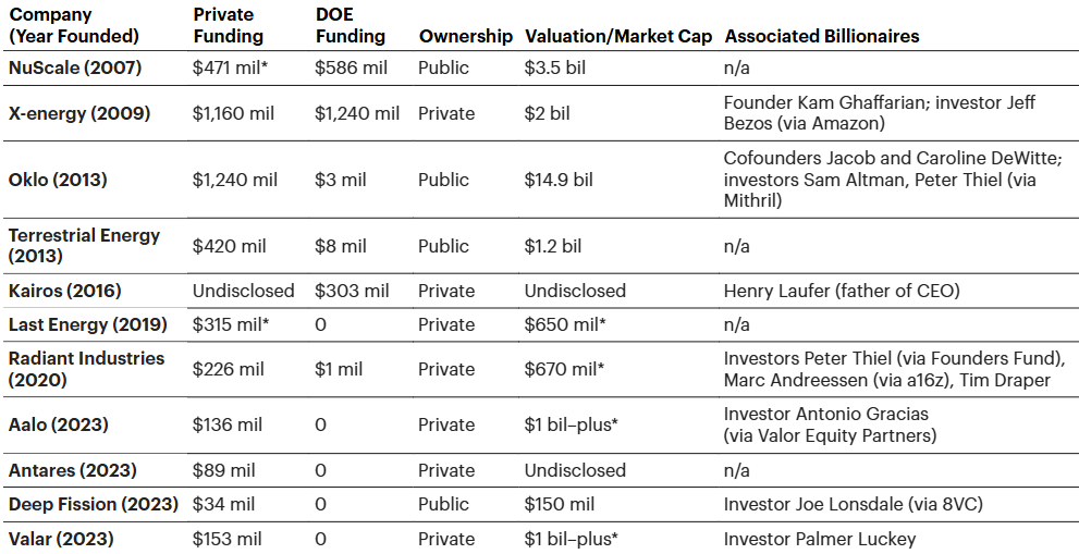 La nueva ola de startups nucleares ha sido financiada por multimillonarios y ha creado algunos nuevos.