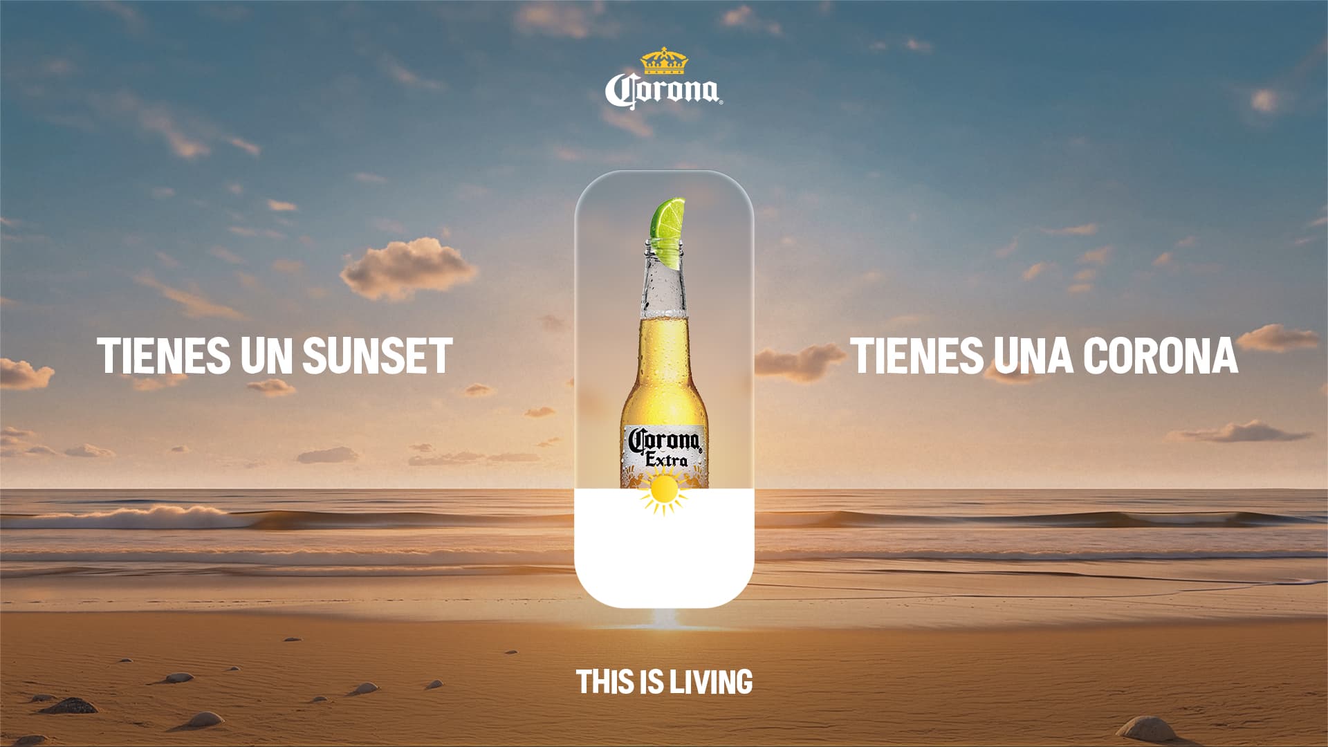 El atardecer es uno de los momentos más deseados y fotografiados del día “la golden hour” y ha sido históricamente un ícono de Corona. Sin embargo, la vida cotidiana muchas veces limita la posibilidad de vivir esa experiencia. Frente a eso, la marca propone una solución simple y universal, si no podemos ir al sunset, el sunset viene a nosotros.