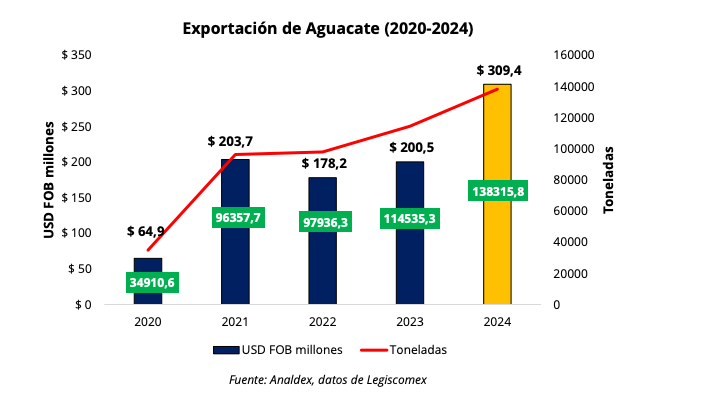 Colombia reafirma así su posición como potencia aguacatera. Entre enero y junio de 2025, el aguacate Hass se consolidó como la tercera fruta más exportada del país con 146.764 toneladas y US$279,4 millones. El cultivo, que ya ocupa 55.000 hectáreas en 18 departamentos, aportó además el 2,5% del PIB agrícola nacional en el segundo trimestre del año.