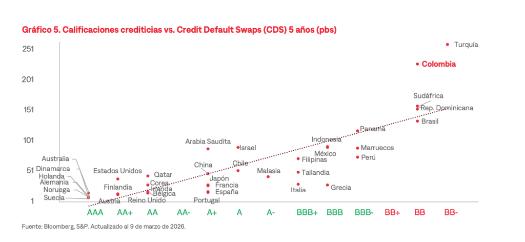 Según el informe, el mercado ya está “cobrando factura” al Gobierno, exigiendo mayores tasas de interés para prestar recursos. Este fenómeno se refleja en la desvalorización generalizada de la curva de rendimientos de los títulos de deuda pública (TES), que actualmente se negocian alrededor del 14%, en medio de restricciones de liquidez significativas.